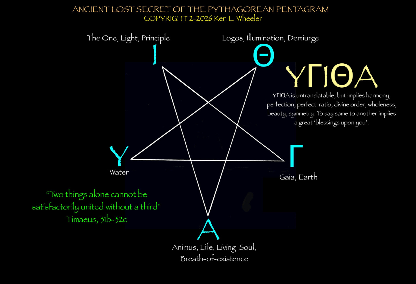 Eureka! Imagine a 100-piece puzzle, and 15 or so pieces are lost under the couch, you KNOW what the picture is, but those final pieces are very important. Deep in theurgy, of which Cayce called it the ‘Akashic Records’, I GOT THOSE remaining 15 or so pieces and I now know the puzzle is complete, perfect and literally beautiful and undeniable! This is the deepest of Rabbit-Holes I could go down with you for many hours! Download six pages of diagrams in the link below and follow along with me in the video tonight! I honestly tell you this is extremely important, & incredible to discover what was literally lost 1000s of years ago! I was, in theurgy, & ‘given the answers’ I was looking for, and quickly composed the charts below which are irrefutable; HOWEVER I went looking for confirmation, of proof, of one of these uncovered secrets as to the lost Pythagorean ORDERING of the greeting, or inner-circle phrase YUGITHA, YΓIΘA, and behold, I found it, and confirmed it!